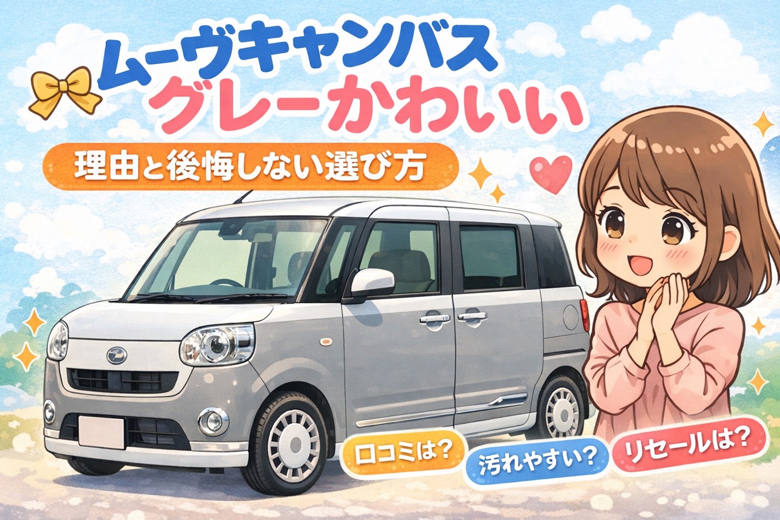 ムーヴキャンバスのグレーがかわいいってよく聞くけど本当?ツートーンとモノトーンはどっちがいい?汚れや傷は目立たない?そんな疑問を持って、ムーヴキャンバスのグレーかわいい理由や口コミ、人気色ランキング、ツートーンの評判、後悔しない選び方を探していませんか。