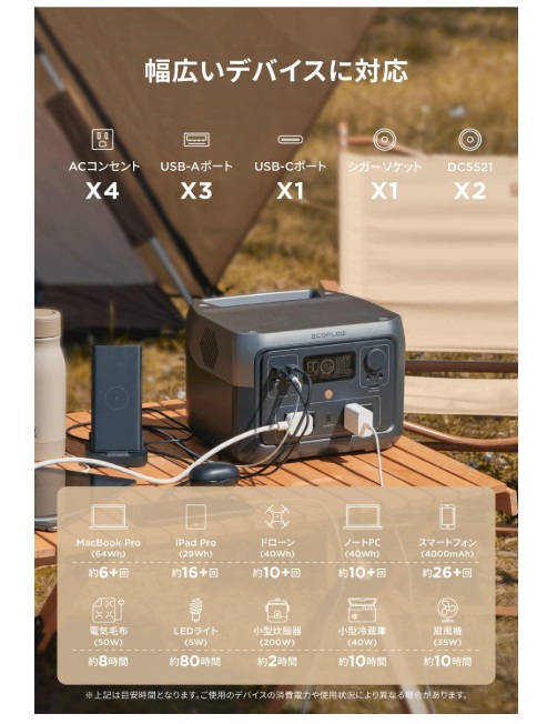 ポータブル電源 512Wh 60分フル充電の詳細はこちら→