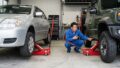 車載ジャッキはあくまで「出先での緊急パンク修理用」であり、非常に不安定です。ジムニーの重い車体を安全に、かつ楽に持ち上げるためには、耐荷重に余裕のある(最低でも2トン、できれば3トン対応)油圧式フロアジャッキを必ず用意してください。